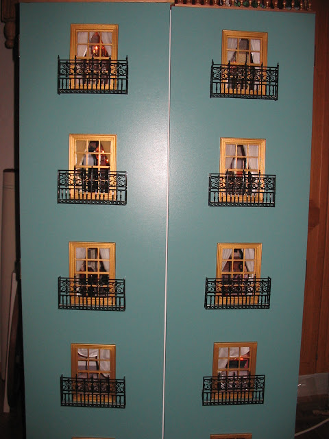 Hotelli takaapäin. Huoneiden ovet ja ovenpielet on asennettu, maalasin ne kultamaalilla...